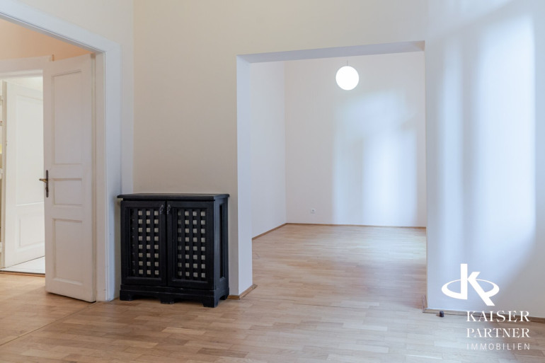 Die Wohnung selbst besticht durch eine beeindruckende Raumhöhe von 3,60m und ein großzügiges, stilvolles Vorzimmer, das den repräsentativen Charakter unterstreicht.