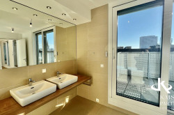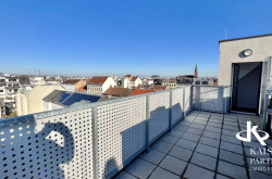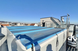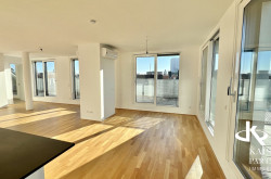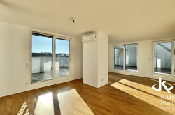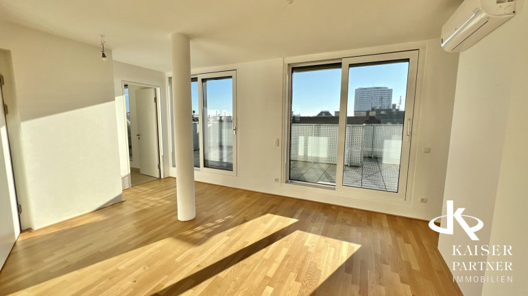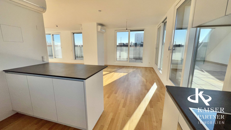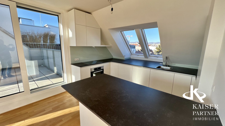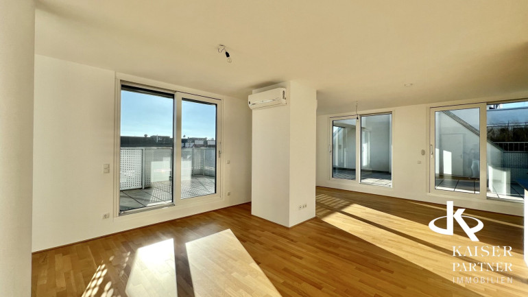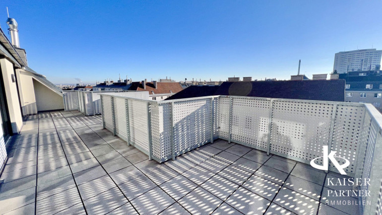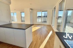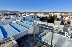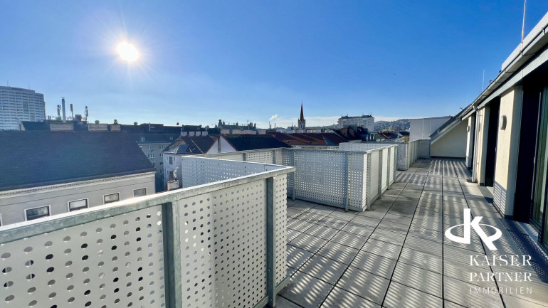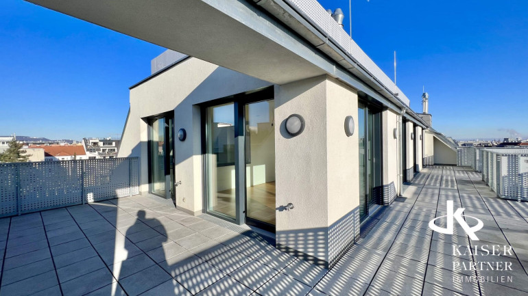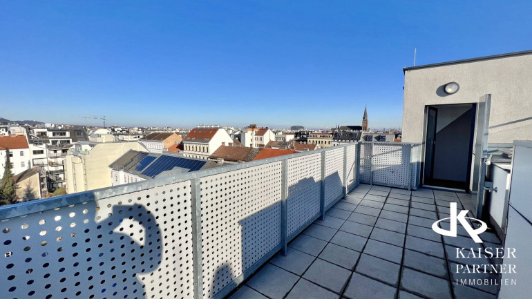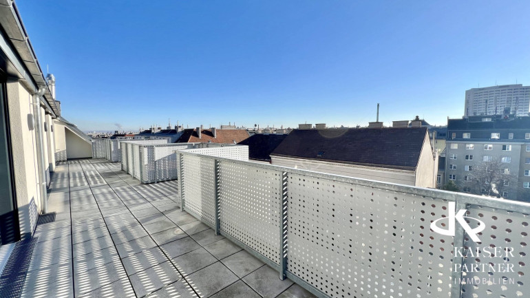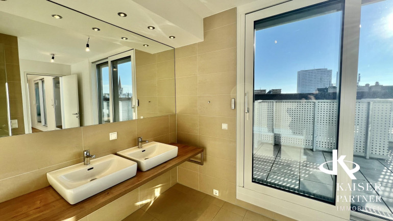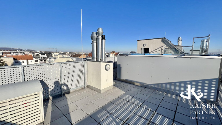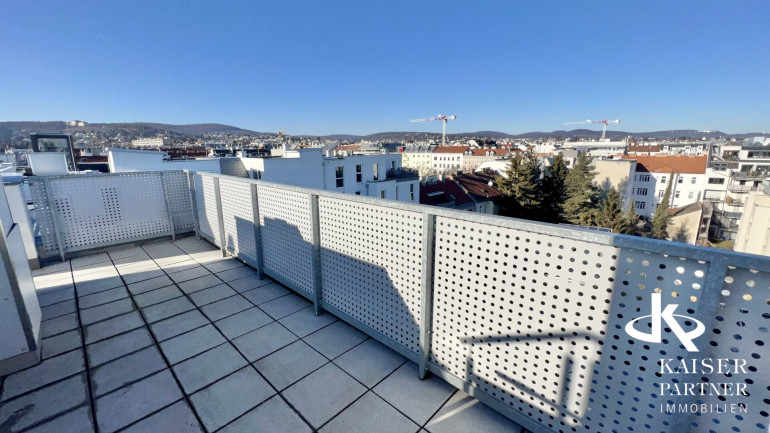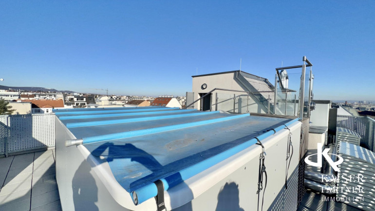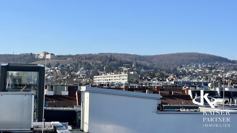 Genießen Sie den atemberaubenden Ausblick von gleich drei Terrassen, die Ihnen einen unvergleichlichen Blick über die Stadt und bis in die Ferne bieten. Der Südbalkon lädt dazu ein, die Sonnenstrahlen zu genießen, während der Nordostbalkon Ihnen die Möglichkeit gibt, die Morgen- und Abendstunden in Ruhe zu verbringen. Ein weiteres Highlight ist der eigene Swimmingpool auf der Topterrasse nit einem tollen Fernblick in alle Himmelsrichtungen bis auf den Wilhelminenberg und Kahlenberg.