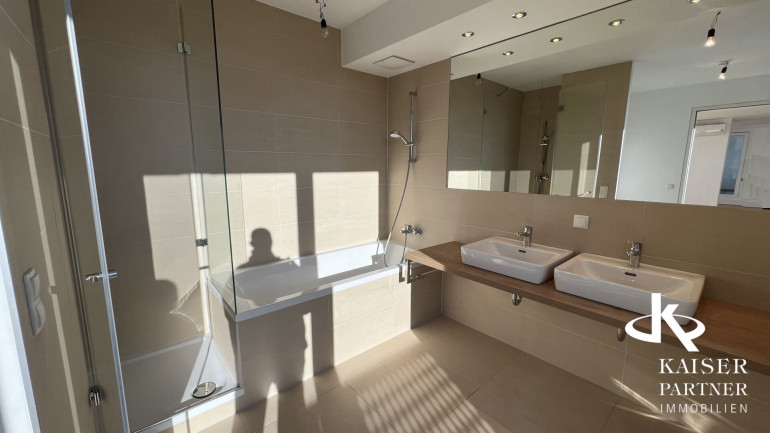 - Badezimmer mit Badewanne, Dusche und Doppelwaschbecken (7,65m²)