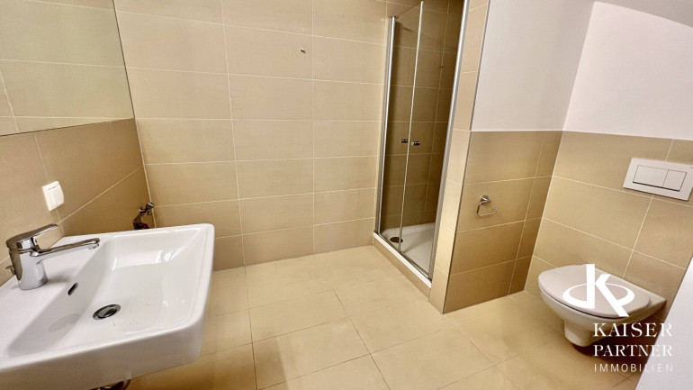 - Badezimmer mit Dusche, WC, Waschbecken und Waschmaschinenanschluss (5,62m²)