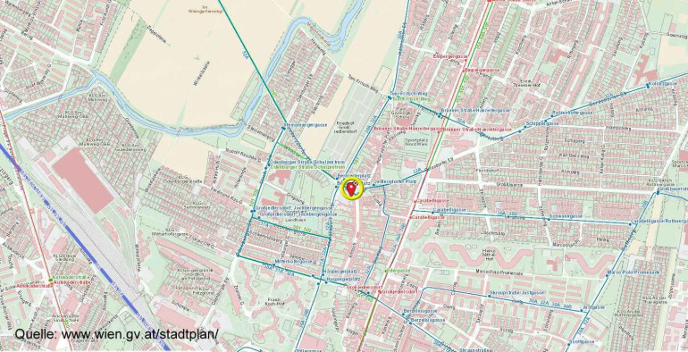 4 Gehminuten zu den Straßenbahnlinien 30 & 31 mit Anbindung an die Schnellbahnlinien S3 & S4