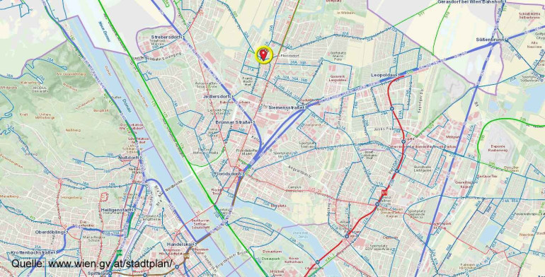 Die Wohnanlage liegt in direkter Nähe zu den wichtigsten Verkehrsachsen Wiens, wie z.B. Brünnerstraße, Donauuferautobahn, Gerasdorferstraße, Ödenburgerstraße