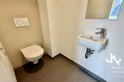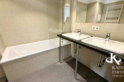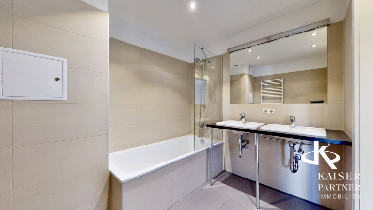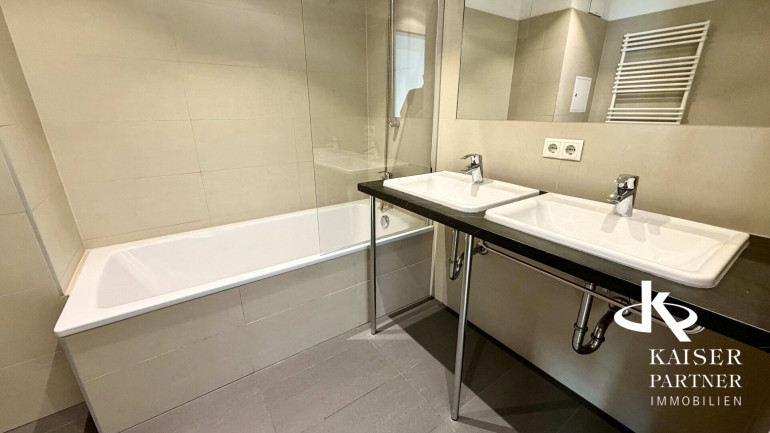 Das größzügige Bad bietet einen Doppelwaschtisch, eine Badewanne und einne Waschmaschinenanschluß. Ein Personenaufzug sorgt für einen bequemen, barrierefreien Zugang zu Ihrer Wohnung. Ein Garagenplatz kann nach Verfügbarkeit angemietet werden. Es steht ein Fahrrad-Kinderwagenraum und eine Waschküche zur Benutzung zur Verfügung.