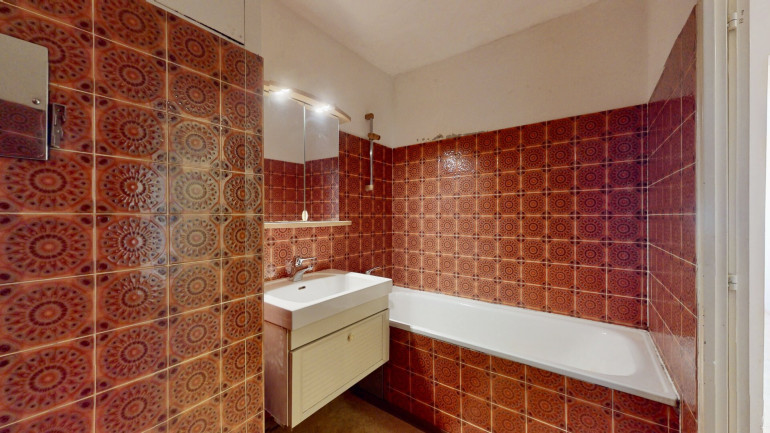 Das Badezimmer ist mit einer Badewanne ausgestattet. Ein Kellerabteil bietet zusätzlichen Stauraum.