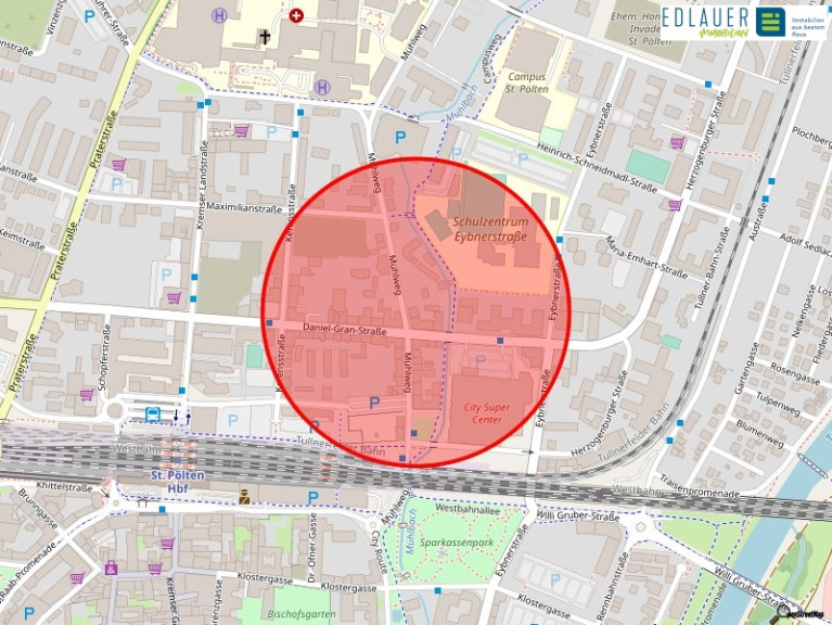Das Wohnhaus befindet sich im Zentrum von St. Pölten. Besonders erwähnenswert ist die ausgezeichnete Verkehrsanbindung. Sowohl in öffentlicher als auch privater Hinsicht ist die Wohnung sehr gut gelegen. Diese gute Lage spiegelt sich auch auf den Bereich Infrastruktur und Einkaufsmöglichkeiten wider. Keine 4 Minuten Gehzeit entfernt befindet sich der St. Pöltner Hauptbahnhof und auch ein kleines Einkaufszentrum befindet sich nur wenige Meter entfernt.