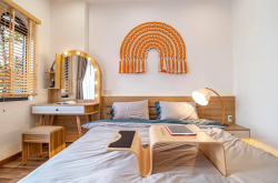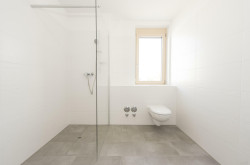 Der Vollholz-Eichenparkettboden sowie das schlichte Design des Badezimmers sind Details, auf die Sie in Zukunft nicht mehr verzichten möchten.