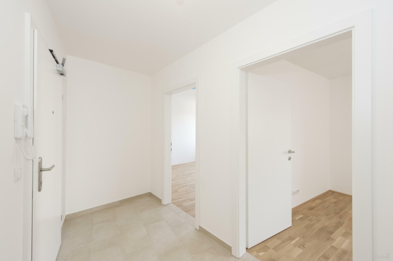 Das freundliche, stilvolle Raumkonzept erlaubt den Zugang vom Vorraum in die zwei getrennt begehbaren Schlafzimmer, Badezimmer mit ebenerdiger Dusche, Fenster und WC, Abstellraum und in den großen, offenen Wohn- Essbereich mit Küche, hier können Sie völlig ungestört Ihre Zeit verbringen.