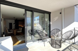 Der großzügige Balkon bietet einen ruhigen, sonnigen Rückzugsort mit Blick ins Grüne und unterstreicht die hohe Wohnqualität dieser Einheit.