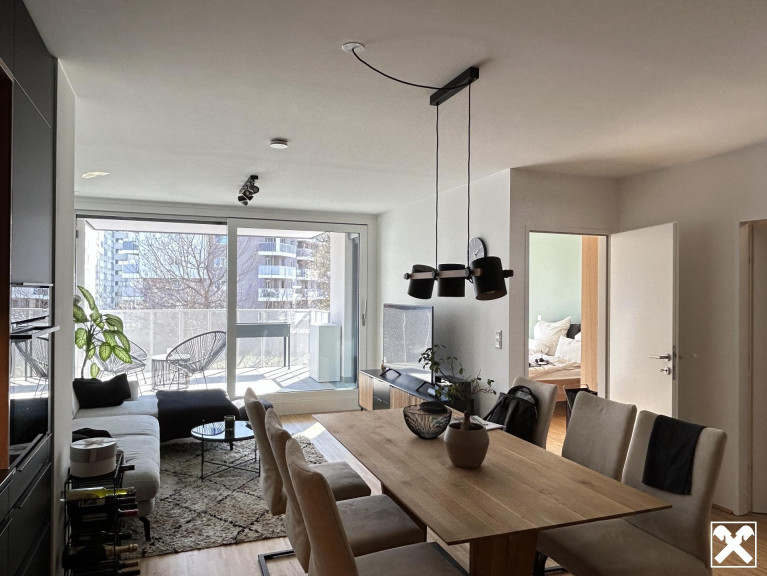 Die Wohnung überzeugt durch ihre durchdachte Raumaufteilung, eine hochwertige Ausstattung sowie eine attraktive Freifläche mit südlicher Ausrichtung in Richtung des Schrickparks.