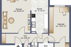 - Die Zimmer sind zentral begehbar, im Badezimmer mit Dusche finden Sie eine Waschmaschine, ein separates WC ist vorhanden.