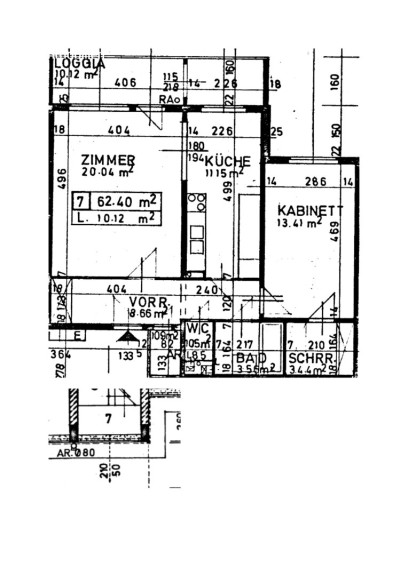- Vom Wohnzimmer gelangen Sie auf die 10 m² große Loggia und in die halb offene, funktionelle Einbauküche älteren Baujahrs.