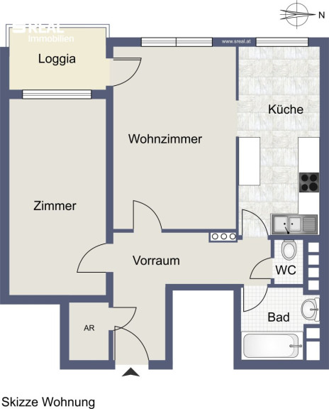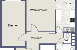 2 Zimmer-Mietwohnung mit großzügiger Küche und Loggia.