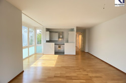 Vorraum, großes Wohnzimmer (ca. 32m²) mit offener Luxusküche und Ausgang auf die westseitige Terrasse mit ca. 11m², Schlafzimmer (ca.13m²), Wannen- & Duschbad, separates WC, Abstellraum mit Waschmaschinenanschluß;