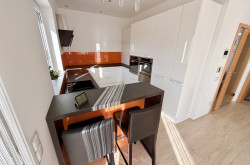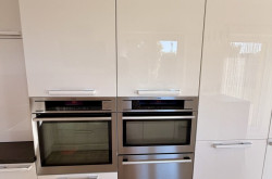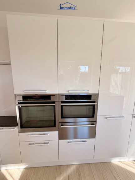 - Verwöhnen Sie Ihre Familie und Freunde mit Kulinarik, zubereitet in der fliederweißen DAN Küche, die mit Gartenblick zum Kochen einlädt. Währenddessen halten sich Ihre Lieblingsmenschen im Ess- oder Wohnbereich auf, um miteinander kommunizieren zu können. Die Küche wartet mit vielen Markengeräten auf Sie, wie z. B. Dampfgarer, Wärmeschublade, Induktionskochfeld, sowie viel Stauraum inklusive. Es trifft Eleganz auf Cleverness: Die Durchreiche von der Speis zur Küche zeigt sich nach außen hin als stilvolle Schrankfront und öffnet sich nur dann, wenn sie gebraucht wird – für kurze Wege und ein aufgeräumtes Gesamtbild.