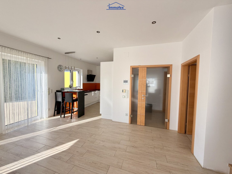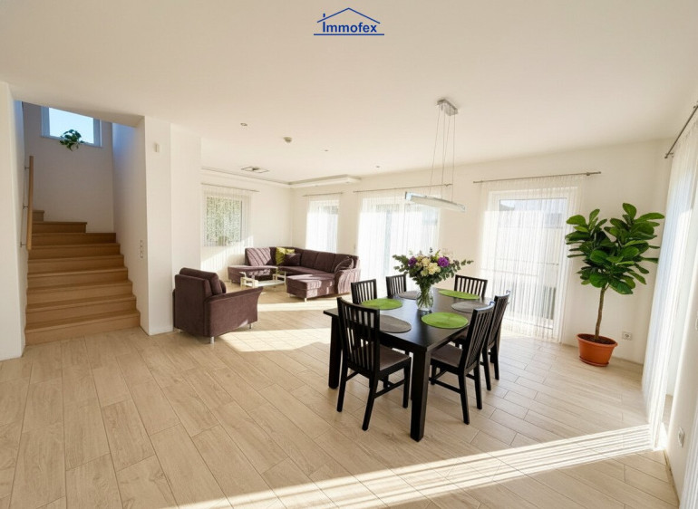 Dann darf ich Sie vielleicht bald begrüßen in Untersiebenbrunn! In einer ruhigen und neueren Wohnsiedlung der Ortschaft sticht das große Einfamilienhaus direkt ins Auge mit seiner erfrischenden Farbe und der Größe. Der Fertigstellung in 2018 ist ein langer Prozess von Planung und Entwicklung vorausgegangen. Hinter diesem Ziegelmassiven Wimberger Haus steht ein Konzept, das kreativen Weitblick mit strategischer Liebe zum Detail vereint. Um diese Vision perfekt zu realisieren, wurde der Bau von namhaften Fachbetrieben sowie einer externen Baubegleitung und Koordination mit höchster Präzision umgesetzt. Mit detailverliebtem Blick ist hier ein Zuhause erschaffen worden, mit dem Fokus auf ein Leben in Leichtigkeit, Sicherheit und Unabhängigkeit.