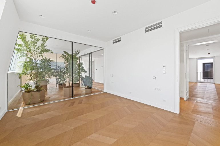 Flooded with natural light through expansive glass elements, with nearly no sloping ceilings, and a winter garden overlooking Vienna’s iconic rooftops and church spires, this residence is truly unique. Premium parquet flooring, state-of-the-art home automation, underfloor heating, and air conditioning guarantee the highest standards of modern living.