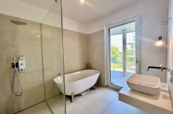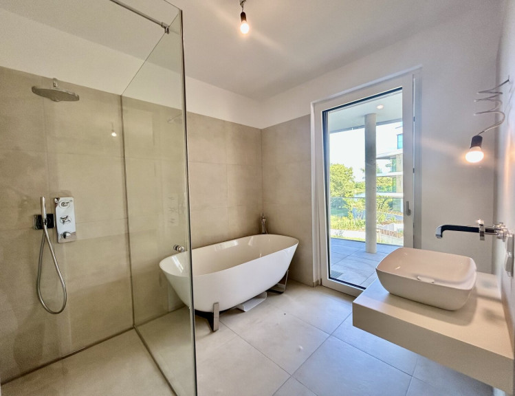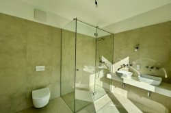 - Luxuriöse Sanitäranlagen: Armaturen der Marken Villeroy & Boch und Hansgrohe Axor Citterio unterstreichen den exklusiven Charakter.