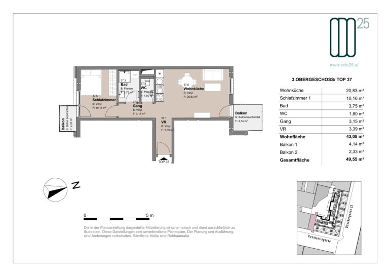ODO25 befindet sich in attraktiver Lage der Odoakergasse im 16. Wiener Gemeindebezirk und überzeugt durch eine hervorragende Anbindung an die Wiener Innenstadt sowie an zahlreiche Naherholungsgebiete. Die ausgezeichnete öffentliche Verkehrsanbindung mit mehreren Straßenbahn-, Bus- und S-Bahn-Linien ermöglicht schnelle und flexible Mobilität in alle Teile der Stadt. Grün- und Freizeitflächen wie Wilhelminenberg, Steinhofgründe, Kongreßpark und Kongreßbad sind in wenigen Minuten erreichbar und bieten vielfältige Erholungsmöglichkeiten. Schulen, Kindergärten, medizinische Versorgung sowie Einkaufsmöglichkeiten befinden sich in unmittelbarer Nähe. Der nahegelegene Brunnenmarkt und der Yppenplatz ergänzen das Angebot durch urbanes Markt- und Gastronomieflair.Beschreibung der Immobilie
