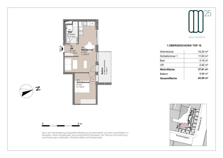 ODO25 befindet sich in attraktiver Lage der Odoakergasse im 16. Wiener Gemeindebezirk und überzeugt durch eine hervorragende Anbindung an die Wiener Innenstadt sowie an zahlreiche Naherholungsgebiete. Die ausgezeichnete öffentliche Verkehrsanbindung mit mehreren Straßenbahn-, Bus- und S-Bahn-Linien ermöglicht schnelle und flexible Mobilität in alle Teile der Stadt. Grün- und Freizeitflächen wie Wilhelminenberg, Steinhofgründe, Kongreßpark und Kongreßbad sind in wenigen Minuten erreichbar und bieten vielfältige Erholungsmöglichkeiten. Schulen, Kindergärten, medizinische Versorgung sowie Einkaufsmöglichkeiten befinden sich in unmittelbarer Nähe. Der nahegelegene Brunnenmarkt und der Yppenplatz ergänzen das Angebot durch urbanes Markt- und Gastronomieflair.Beschreibung der Immobilie