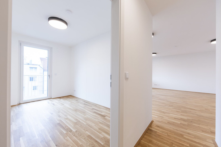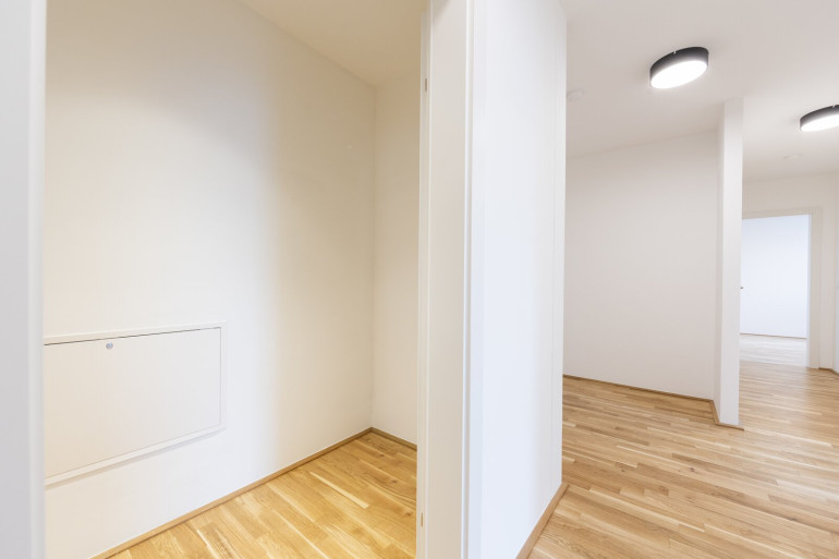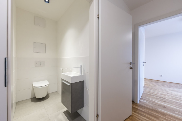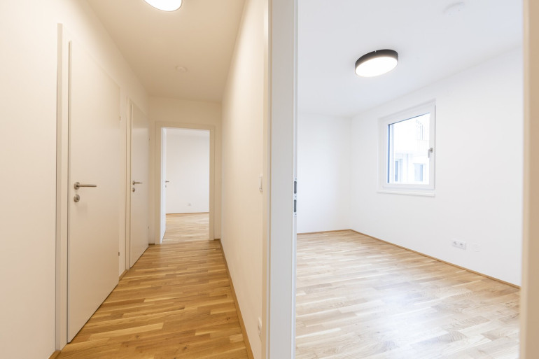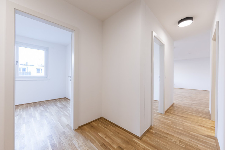 Die Wohnungen verfügen über große, bodentiefe Fenster, die viel natürliches Licht hereinlassen und für eine angenehme Wohnatmosphäre sorgen. Hochwertige Materialien wie Parkettböden in den Wohnbereichen und moderne Fliesen in den Badezimmern unterstreichen den gehobenen Anspruch des Objekts. Je nach Stockwerk bieten die Wohnungen eine wunderbare Aussicht auf die grüne Umgebung oder die beeindruckende Skyline der Donau City.