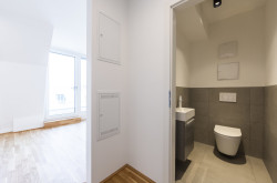 Die Wohnungen verfügen über große, bodentiefe Fenster, die viel natürliches Licht hereinlassen und für eine angenehme Wohnatmosphäre sorgen. Hochwertige Materialien wie Parkettböden in den Wohnbereichen und moderne Fliesen in den Badezimmern unterstreichen den gehobenen Anspruch des Objekts. Je nach Stockwerk bieten die Wohnungen eine wunderbare Aussicht auf die grüne Umgebung oder die beeindruckende Skyline der Donau City.