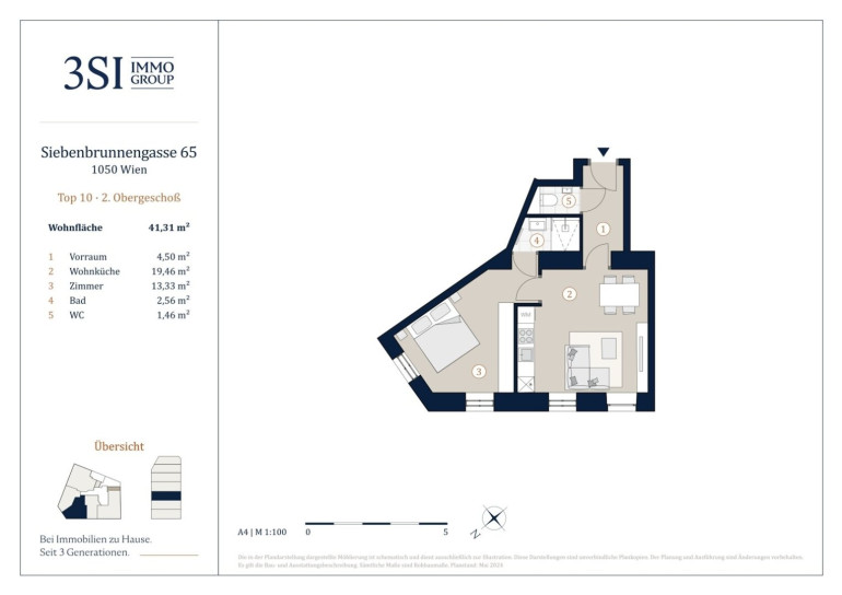 Das Wohnprojekt VIVIENNE überzeugt durch seine zentrale und dennoch ruhige Lage im beliebten 5. Wiener Bezirk Margareten. In nur wenigen Gehminuten erreichen Sie wichtige Verkehrsanbindungen, wie die Buslinien 12A und 14A sowie die U-Bahn-Station Pilgramgasse (U4), die Ihnen schnelle Verbindungen in die gesamte Stadt ermöglichen. Auch der Matzleinsdorfer Platz mit seiner S-Bahn- und Straßenbahnanbindung ist in kurzer Zeit erreichbar. Die Umgebung bietet vielfältige Möglichkeiten für Freizeit und Erholung. Der nahegelegene Haydnpark sowie weitere Grünflächen und Radwege laden zu entspannten Spaziergängen und sportlichen Aktivitäten ein. Für Familien stehen zahlreiche Spielplätze zur Verfügung, und Sportvereine sowie Fitnessstudios befinden sich in unmittelbarer Nähe.Beschreibung der Immobilie