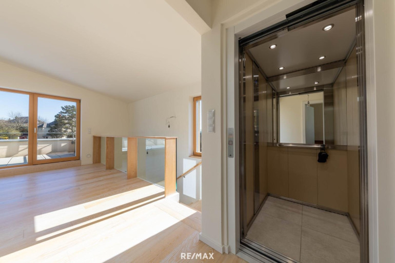 Ein Lift verbindet alle Ebenen des Hauses barrierefrei und unterstreicht den komfortablen Charakter der Immobilie. Die energieeffiziente Luftwärmepumpe mit Fußbodenheizung sowie eine kontrollierte Wohnraumlüftung sorgen ganzjährig für ein angenehmes Raumklima.