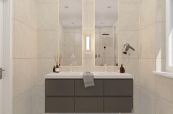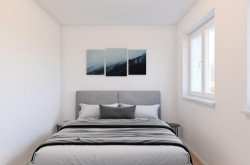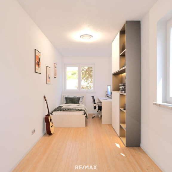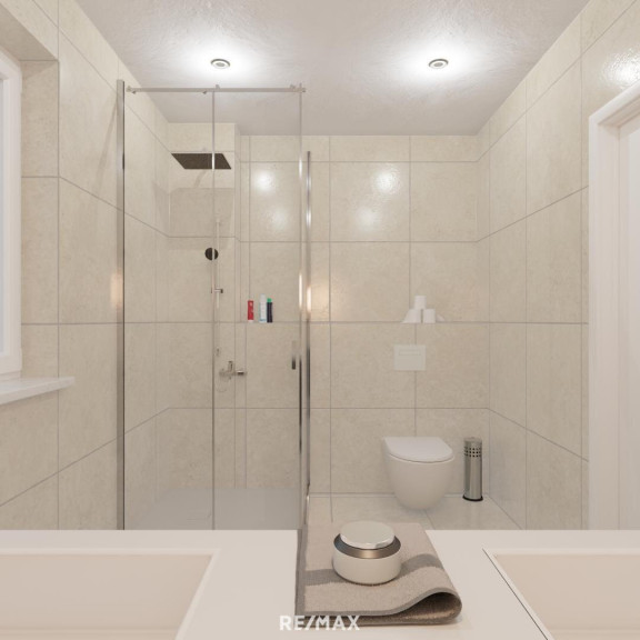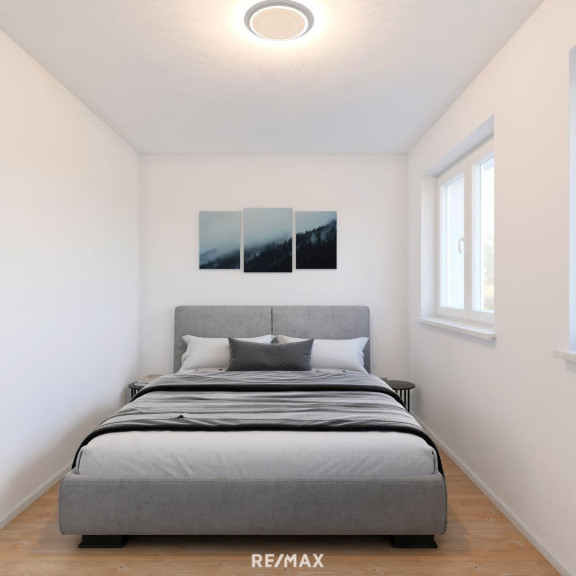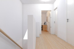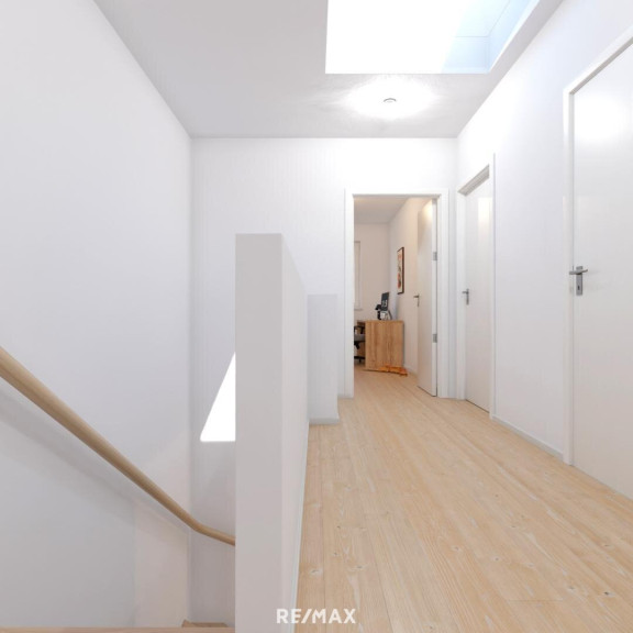 Im Erdgeschoss befindet sich das Herzstück des Hauses: eine großzügige Wohnküche mit Zugang zur westseitigen Terrasse und dem großen Garten. Ein Badezimmer mit Dusche und WC ist ebenfalls auf dieser Ebene, direkt neben dem Vorraum, situiert. Im Obergeschoss befinden sich 3 Schlafzimmer und ein weiteres Bad, ebenfalls mit Dusche und WC. Dank des Flachdachs gibt es keine Dachschrägen; die Räume präsentieren sich großzügig mit einer Raumhöhe von ca. 260 cm. Eine Lichtkuppel bringt zusätzlich viel Tageslicht in den Vorraum.