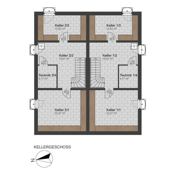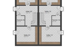 Im rund 60 m² großen Keller befinden sich der Technikraum, ein Lager sowie ein weiteres Zimmer, das als Büro, Hobbyraum oder Wellnessbereich ausgebaut werden kann.