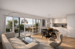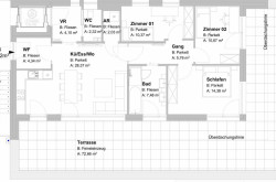 Die zum Verkauf stehende 4-Zimmer-Penthouse-Wohnung befindet sich im 2. Obergeschoss (mit Lift) und überzeugt durch ihre durchdachte Raumaufteilung, helle Wohnräume und eine großzügige 73 m² Terrasse mit Blick ins Grüne.