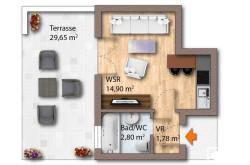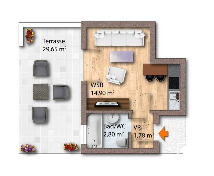 Besonderes Highlight ist die private Terrasse mit Ausrichtung nach Nordwesten. Hier können Sie die ruhigen Abendstunden genießen oder an warmen Tagen entspannen.
