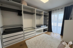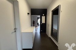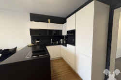 Diese moderne Penthouse-Wohnung bietet eine großzügige Dachterrasse mit wunderbarem Ausblick, zwei Schlafzimmer, davon eines derzeit als begehbarer Schrank genutzt, eine offene, moderne Küche und viel Licht.