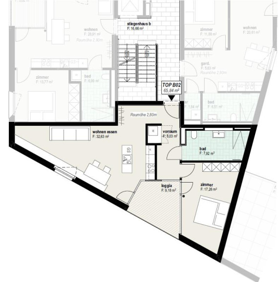 Zentrale 2 Zimmer Mietwohnung B 02