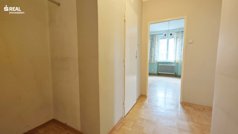 Das Wohnhaus wurde 1958 errichtet und präsentiert sich in gepflegtem Zustand. Die Wohnung befindet sich im 4. Liftstock und umfasst eine Fläche von ca. 66 m², die sich wie folgt aufteilen:
