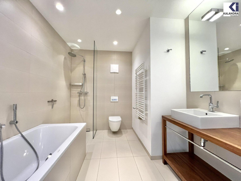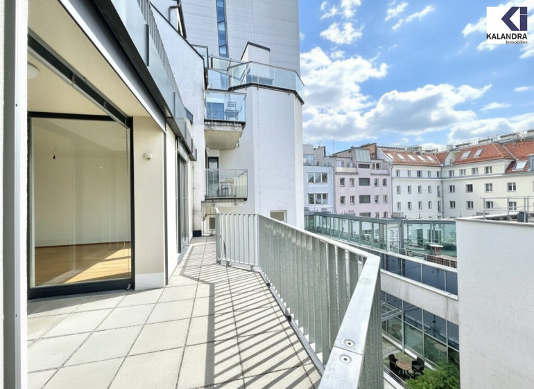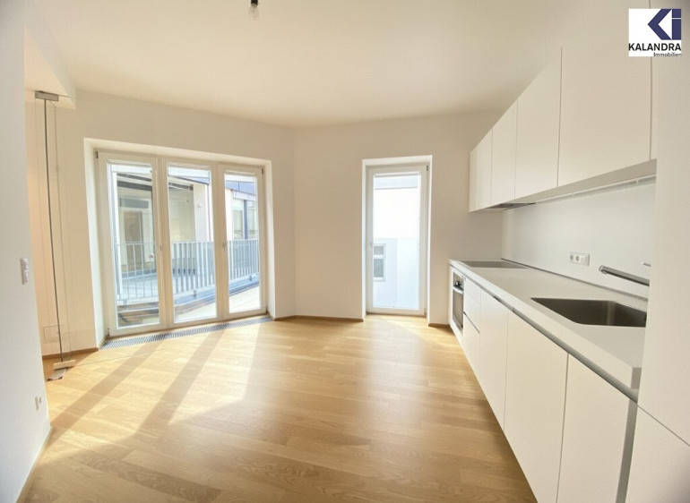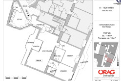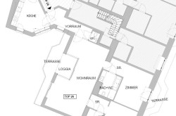 Vorraum, großer Wohnraum mit Zugang zu einer Terrasse + Loggia, Küche mit Zugang zu einem Abstellraum + Waschmaschinenanschluss, Schlafzimmer mit zugeordnetem Wannenbad + WC und Zugang zu der zweiten Terrasse, weiteres Schlafzimmer mit zugeordnetem Duschbad und begehbaren Schrankraum und ein separates WC.