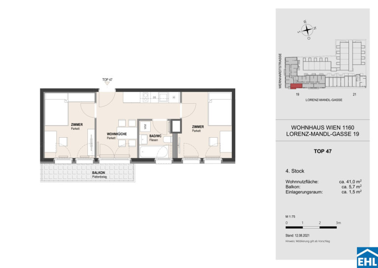 Die Wohnung befindet sich im 16. Wiener Gemeindebezirk und zeichnet sich sowohl durch die großartige Anbindung in die Innenstadt sowie die Infrastruktur rund um die Liegenschaft aus. Durch die in unmittelbarer Nähe befindlichen öffentlichen Verkehrsmittel, lassen sich die Innenbezirke Wiens in weniger als 20 Minuten erreichen. Optional ist es ebenfalls möglich, einen Garagenplatz zusätzlich anzumieten.