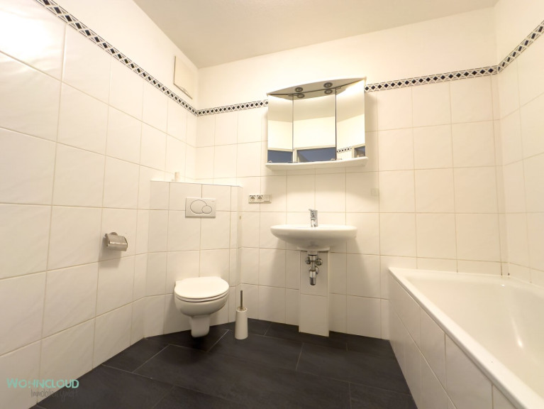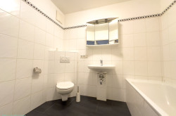 - 1 Badezimmer mit Badewanne, Waschbecken & WC