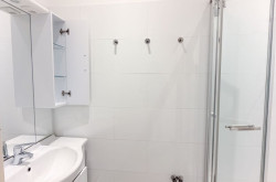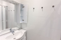 - ein Badezimmer ausgestattet mit einer Dusche