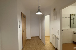Der Vorraum sorgt für einen angenehmen Empfang und bietet genügend Platz für Garderobe und Stauraum. Das Badezimmer ist funktional gestaltet und wird durch ein separates WC ergänzt – ein Detail, das den Alltag spürbar komfortabler macht.