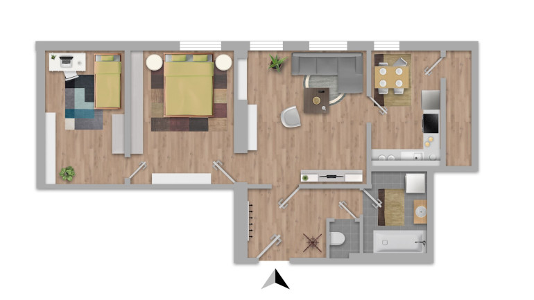 Die Wohnung verfügt über zwei weitere Zimmer, die vielseitig nutzbar sind. Ob als Schlafzimmer, Homeoffice oder Gästezimmer – hier lassen sich individuelle Wohnbedürfnisse optimal umsetzen.