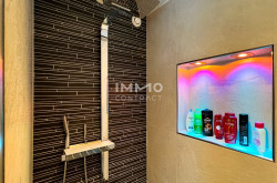 Highlights: beheizbarer Salzwasser-Pool mit Überdachung, dimmbares Licht, integrierte Audiosysteme, Erdwärmeheizung, energieeffiziente Gebäudehülle.