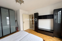 Das Schlafzimmer ist mit einem komfortablen Doppelbett (inkl. neuer Matratzen) sowie einem geräumigen Kleiderschrank ausgestattet. Ein zusätzlicher Wandverbau bietet Platz für TV, Bücher oder persönliche Dekoration.