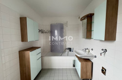 Das großzügige Badezimmer verfügt über eine Badewanne, ein Handwaschbecken sowie einen Waschmaschinenanschluss. Das WC ist separat und ebenfalls mit einem Handwaschbecken ausgestattet – ideal für Gäste.
