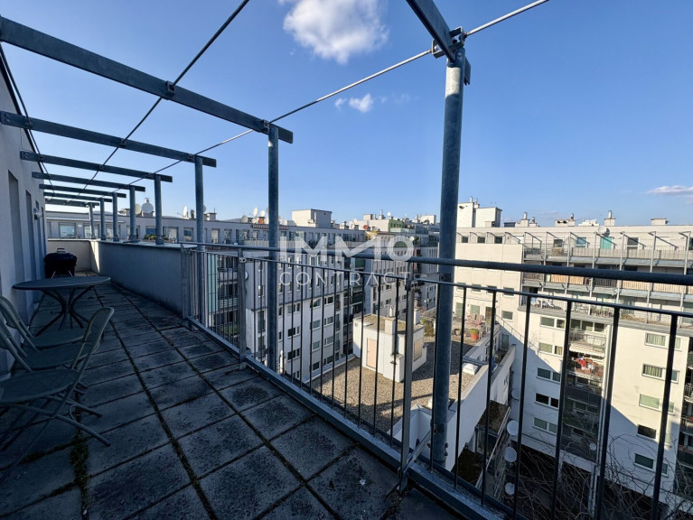 Diese großzügige und bestens aufgeteilte 2-Zimmer-Wohnung befindet sich im letzten Liftstock eines gepflegten Wohnhauses und überzeugt vor allem durch ihre außergewöhnliche 27 m² große Terrasse (Richtung Innenhof) – ein echtes Highlight, das von allen Zimmern aus direkt begehbar ist und zu ruhigen und entspannten Stunden im Freien einlädt.
