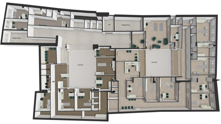Geplant sind derzeit bis zu 8 individuell ein- und planbare Ordinationen zwischen 35 und 380 m².