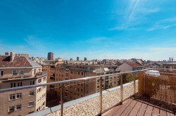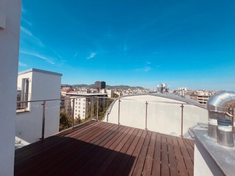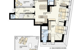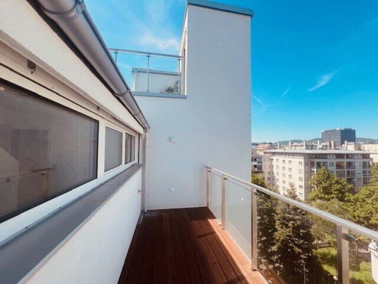 großzügig und elegant präsentiert sich diese Dachwohnung im 2.DG - wunderschöne Wohnküche mit rd. 36m², viele Fensterflächen und Ausgang auf eine rd. 7,60m² Terrasse. Vom Vorraum gelangt man über eine Stiege auf die rd. 23m² Dachterrasse mit Fernblick. Viele Freiflächen zum Entspannen, Grillen und Sonnenbaden in der warmen Jahreszeit.
