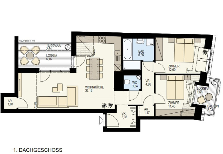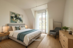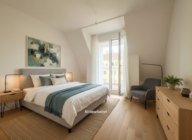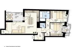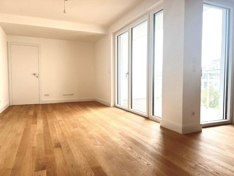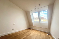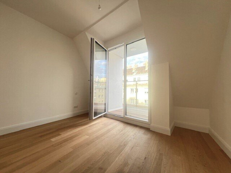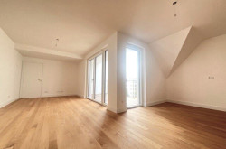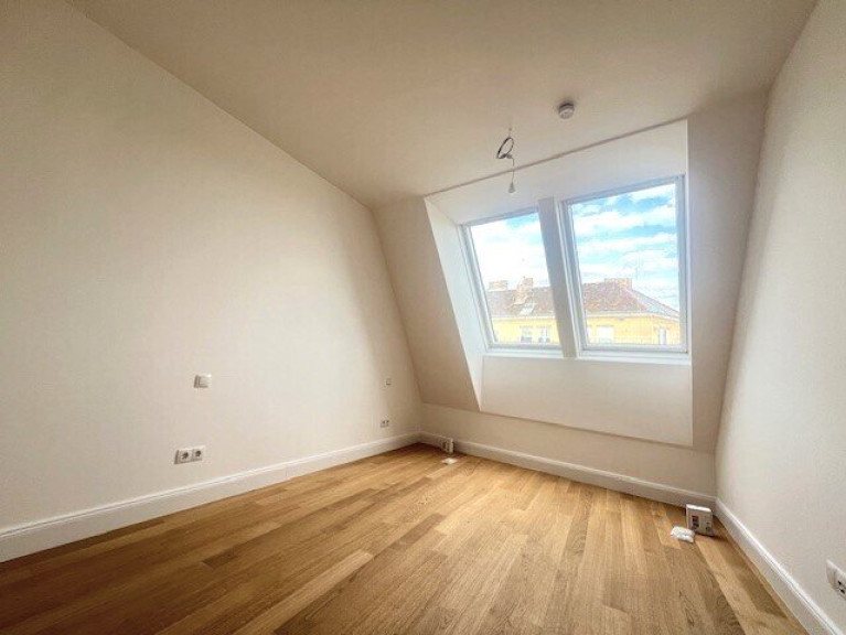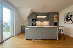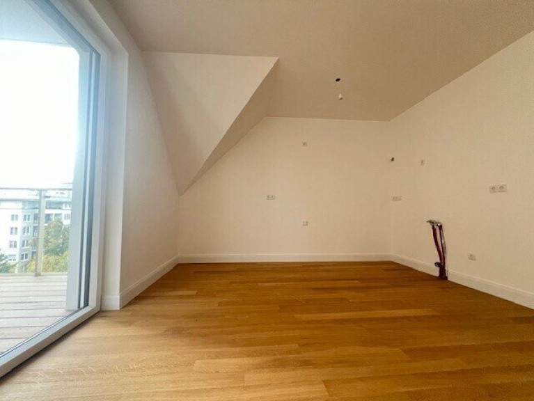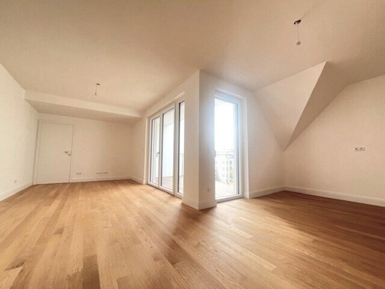 sehr gut geschnittene hof- und gassenseitige 3 Zimmer Dachgeschoss-Neubauwohnung im 1.DG. Großzügige Wohnküche mit rd.36m² und Ausgang auf die rd. 8,70m² Loggia mit Blick in weitläufige Innenhof Gartenflächen mit Baumbestand der benachbarten Wohnhausanlagen. Zwei schöne nach SO orientierte Schlafzimmer, eines mit kleiner, rd. 3,5m² Terrasse, Badezimmer mit Wanne und Dusche sowie WM-Anschluss, separates WC mit Handwaschbecken und zwei Abstellräume.