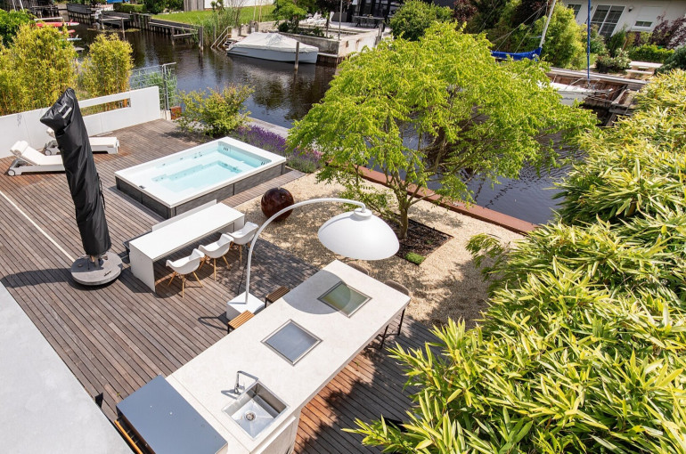 - Große Seeterrasse mit Schwimmsteg und Außendusche