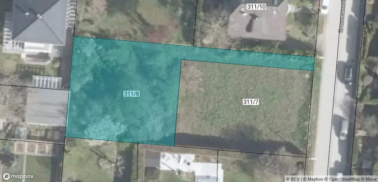 Der Baugrund verfügt über die Widmung BKL I, 6.5m, ogk, 33% bebaubare Gst-Fläche (rd 202m²); der oberste Abschluß des Daches darf nicht höher als 4,5m über der tatsächlich errichteten Gebäudehöhe liegen. Sämtliche Anschlüsse befinden sich in der Gasse.