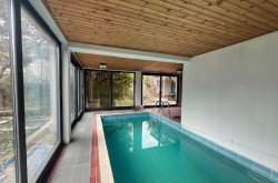 The property features approximately 165m² of living space. Additionally, there is an indoor swimming hall with Indoor Pool (about 3x6m) and the house is basemented. In the basement (approx. 65m²) there is a large hobby room about 24m², dry storage and utility rooms, a sauna, as well as the house and pool technology.